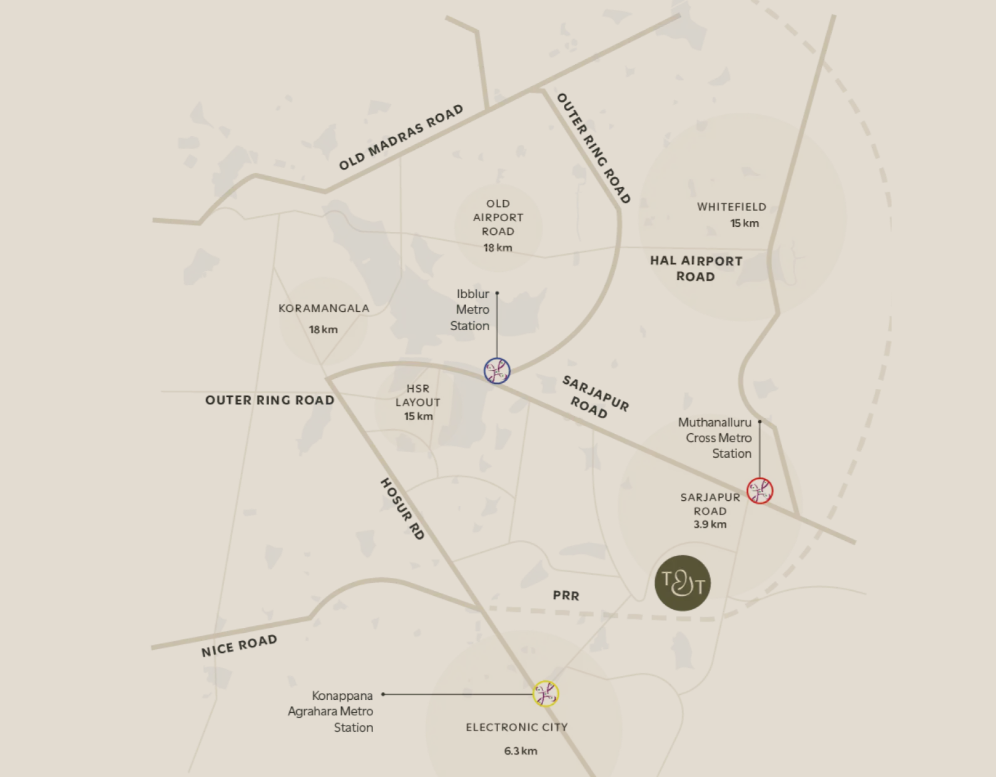 Enjoy unparalleled connectivity with direct access to Jayanagar and Electronic City, placing Bengaluru’s key hubs within effortless reach. Travel to Bengaluru International Airport with ease, and stay close to leading workplaces — Wipro (15 mins), Tata Consultancy Services (25 mins), Infosys (35 mins), and Embassy Tech Village (45 mins). Whether for business, leisure, or daily commutes, this location ensures you’re always well-connected to where you need to be.